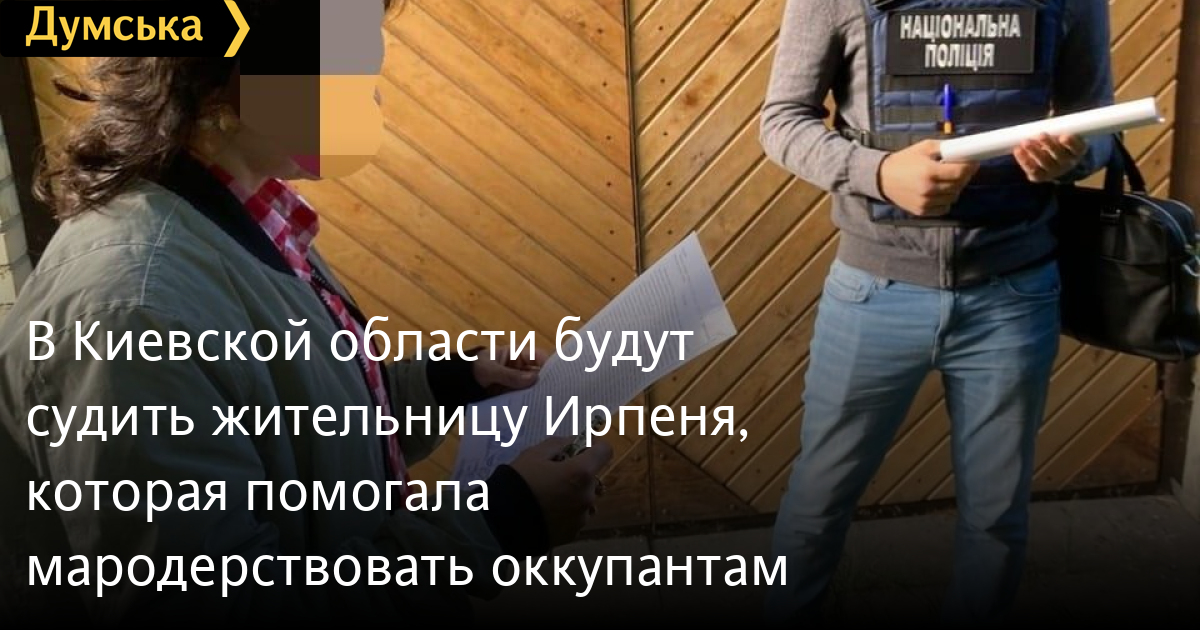 На Київщині судитимуть мешканку Ірпеня, яка допомагала мародерствувати окупантамГоловне слідче управління Нацполіції направило до суду обвинувальний акт щодо 45-річної мешканки Ірпеня, яка допомагала окупантам грабувати будинки забезпечених мешканців міста. У Нацполіції повідомили, що під час обшуку у фігурантки вилучили вкрадені речі вартістю понад 500 тисяч гривень – це побутова техніка, комп'ютери, велосипеди, мобільні телефони, ювелірні вироби, одяг, дорогі алкогольні напої та парфумерія. Сусіди жінки впізнали свої речі, які зникли під час окупації. Також у посібниці окупантів знайшли ворожу символіку. СМЕРТЬ РОСІЙСЬКИМ ОКУПАНТАМ! Помітили помилку? Виділяйте слова з помилкою та натискайте control-enter |