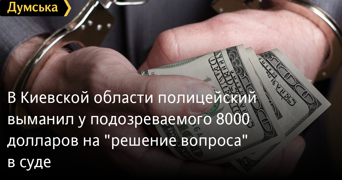 В Киевской области полицейский выманил у подозреваемого 8000 долларов на «решение вопроса» в судеОперуполномоченного Управления по борьбе с наркопреступностью в Киевской области подозревают в мошенническом завладении 8000 долларов. Как сообщили в Государственном бюро расследований, досудебное расследование относительно подозреваемого правоохранителя и его сообщника завершено. Подельники за 8000 долларов США обещали подследственному помочь избежать тюрьмы. Его обвиняли в похищении автомобилей, а подозреваемые предложили помощь. Они заверили, что могут договориться с судьей Белоцерковского горрайонного суда Киевской области о назначении наказания не связанного с лишением свободы. Как установило следствие, злоумышленники получили деньги, но даже не планировали их кому-либо передавать. Теперь подельникам грозит до трех лет тюрьмы. СМЕРТЬ РОССИЙСКИМ ОККУПАНТАМ! Заметили ошибку? Выделяйте слова с ошибкой и нажимайте control-enter |
