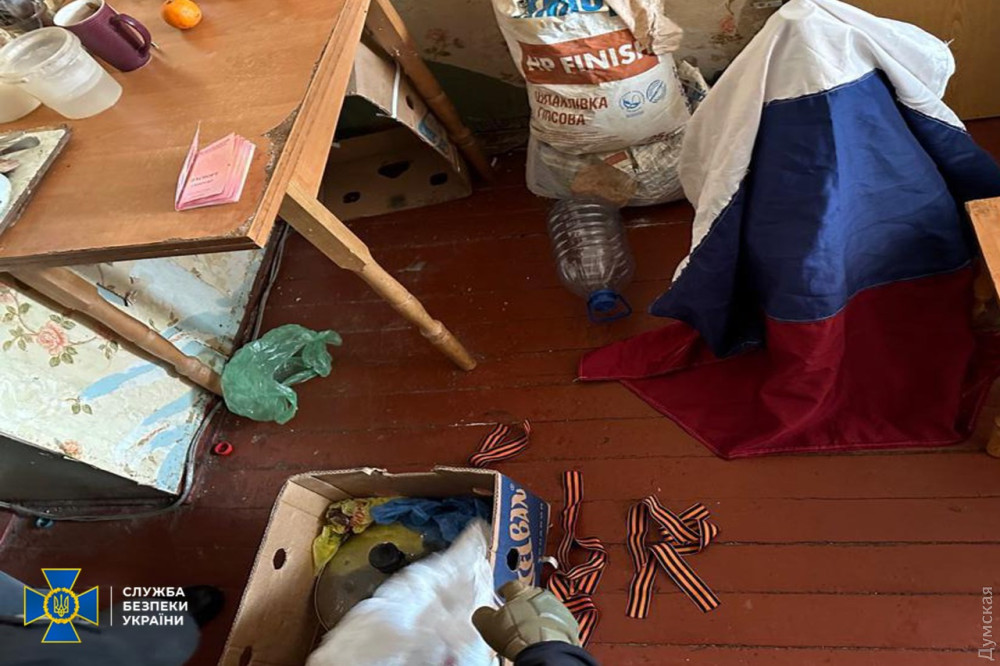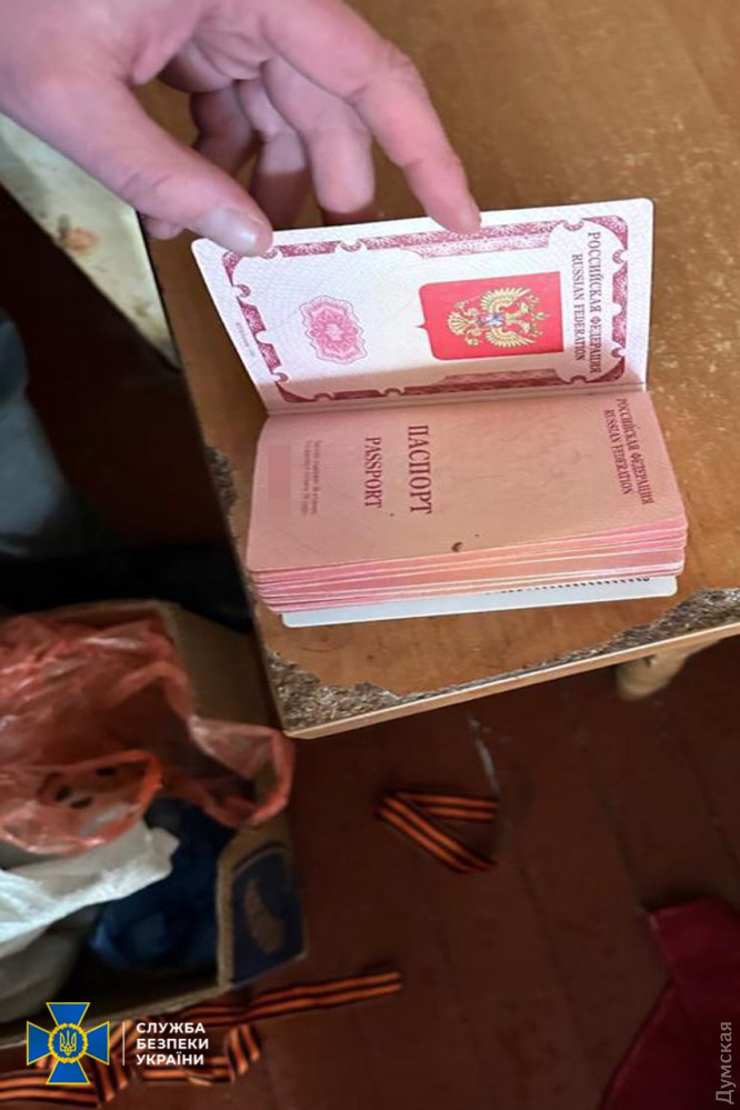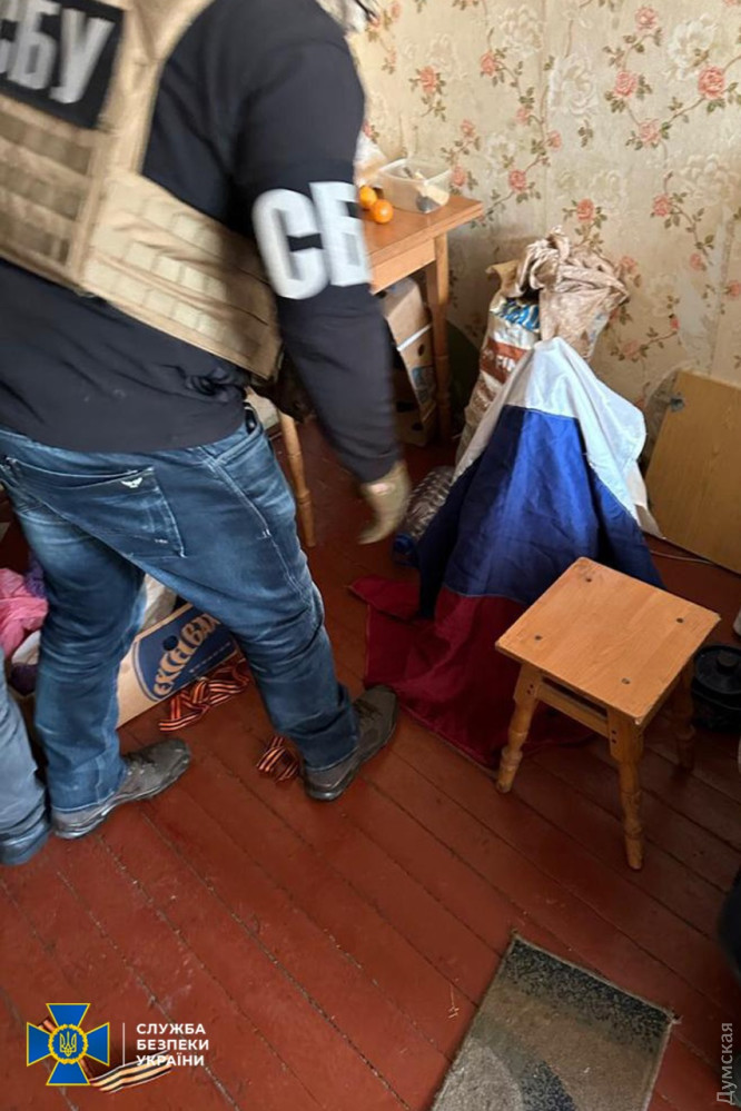 У помешканні фігуранта виявили російський паспорт і прокремлівську символіку, також у нього вилучили мобільні телефони з листуванням із кураторами.
