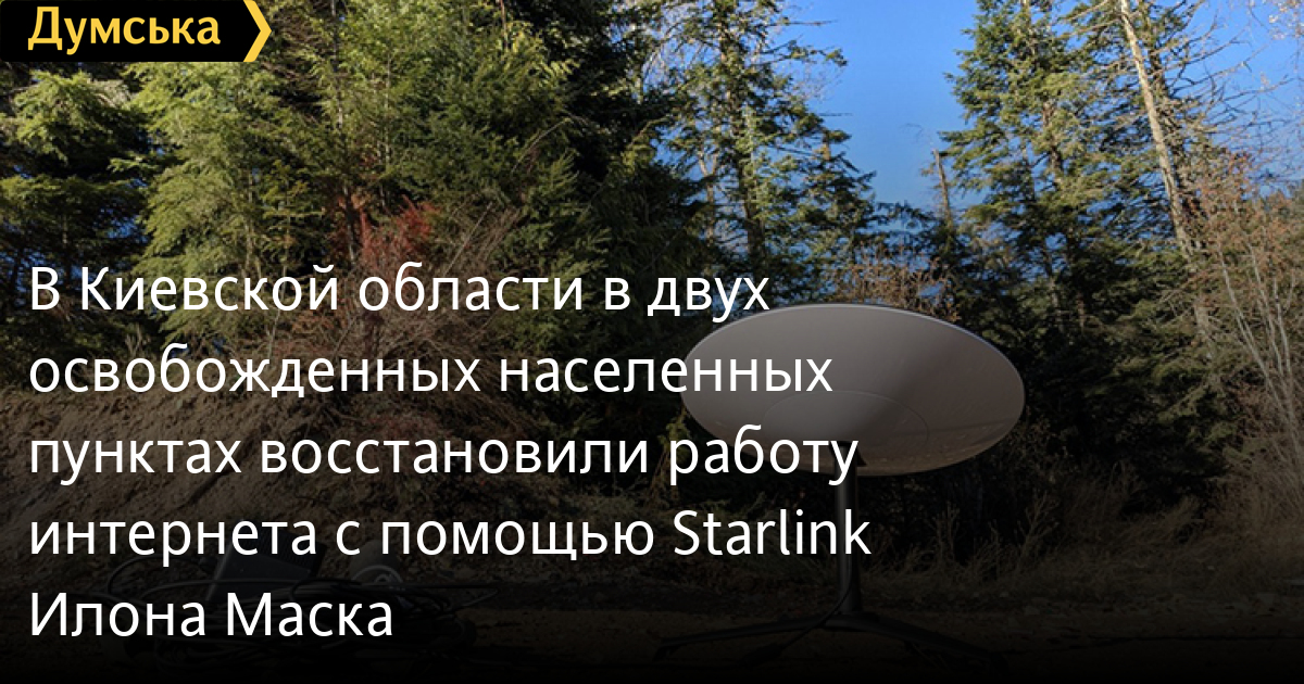 В освобожденных городе Буча и селе Романовка в Киевской области удалось наладить работу интернета с помощью оборудования Starlink, поступившего в Украину от компании SpaceX Илона Маска.