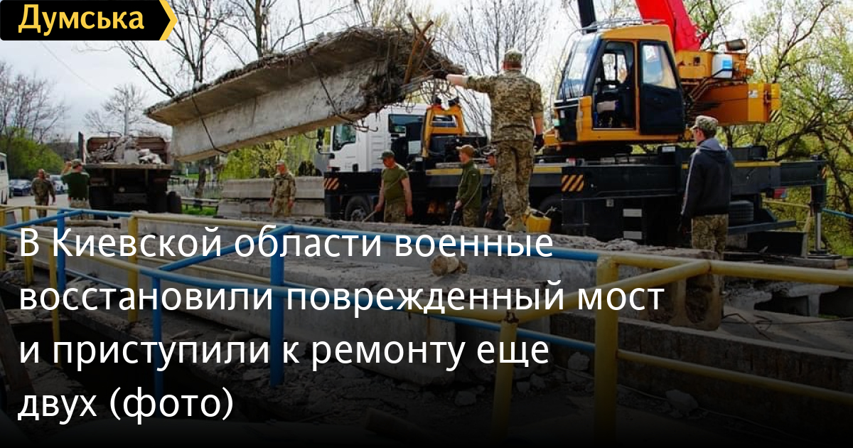 По данным Министерства обороны Украины, военные восстановили уже второй мост в Киевской области и принялись чинить еще два моста в Фастовском районе.