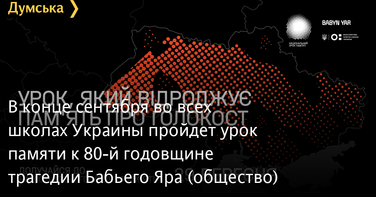 В конце сентября во всех школах Украины пройдет урок памяти к 80-й годовщине трагедии Бабьего Яра (общество)29 сентября к 80-й годовщине трагедии Бабьего Яра одновременно в 15 тысячах школ Украины пройдет Национальный урок памяти. Его проведет Мемориальный центр Холокоста «Бабий Яр» совместно с Министерством образования и науки Украины. Урок призван выработать негативное отношение к фактам дискриминации, пренебрежения к человеческому достоинству, посягательству на право на жизнь. Урок для учащихся 5-11 классов будет проходить на базе онлайн-платформы «Красная точка памяти», разработанной Мемориальным центром. Все материалы подготовлены с учетом возраста и эмоциональной зрелости школьников. Стрим урока также будет осуществляться на сайте Министерства образования и науки и в социальных сетях Мемориального центра Холокоста «Бабий Яр». «По результатам исследований почти половина украинцев не знает, где находится Бабий Яр. Именно поэтому основной задачей образовательного направления Мемориального центра является просвещение и создание новых моделей преподавания истории Холокоста, — отметила директор образовательных проектов Мемориального центра Холокоста «Бабий Яр» Анна Мазарчук. — Мы благодарны Министерству образования за поддержку наших проектов и совместную работу над Национальным уроком памяти. Мы стремимся изменить подход к изучению истории и сделать процесс интересным для школьников. Этот урок будет первым в истории, который возродит память о Холокосте. Благодаря авторской методике с использованием информационных технологий и элементов исследовательской практики учащиеся смогут лучше понять события из учебника и сделать свой вклад в восстановление правды». Онлайн-платформа «Красная точка памяти», на базе которой состоится урок, посвященный изучению истории Второй мировой войны и Холокоста, создана как помощник учителям истории. Платформа предлагает новую методику преподавания школьного предмета, интерактивную и интересную для учеников. В режиме реального времени учителя и школьники уже сейчас документируют локальную и региональную историю Второй мировой войны и Холокоста, а именно записывают воспоминания очевидцев, оцифровывают музейные экспонаты и артефакты из домашних архивов, ищут информацию о местных памятниках жертвам Холокоста. Все записанные свидетельства и оцифрованные достопримечательности добавляются на платформу и становятся красными точками на карте, которые складываются в общую единую историю. Главная цель проекта — сформировать такое общество, в котором невозможно повторение трагедии, подобной Холокосту. Ранее Министерство образования и науки Украины одобрило платформу «Красная точка памяти» и методические материалы для работы с образовательными проектами на ней. В августе Министерство образования и Мемориальный центр Холокоста «Бабий Яр» подписали меморандум о партнерстве. Стороны договорились о сотрудничестве в сфере образования и науки. Одним из первых совместных шагов был запланирован Национальный урок памяти к 80-й годовщине трагедии Бабьего Яра для учеников украинских школ. Также предусмотрен ряд других просветительских мероприятий. СМЕРТЬ РОСІЙСЬКИМ ОКУПАНТАМ! Помітили помилку? Виділяйте слова з помилкою та натискайте control-enter |