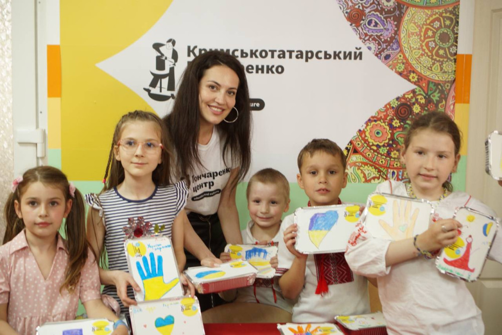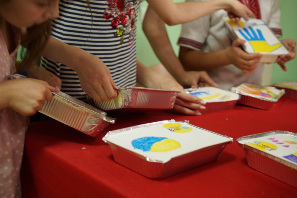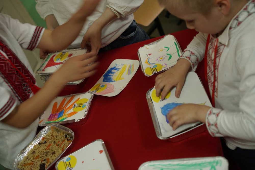 Когда до приготовления плова оставались уже считанные минуты, дети взялись расписывать флаг. На сине-желтом полотне появились сердечки, маленькие ручки и добрые пожелания. Все это отвезут военным, бойцам теробороны и представителям Национальной полиции.