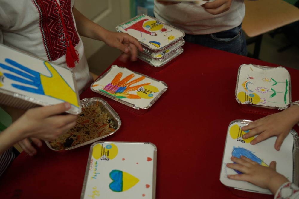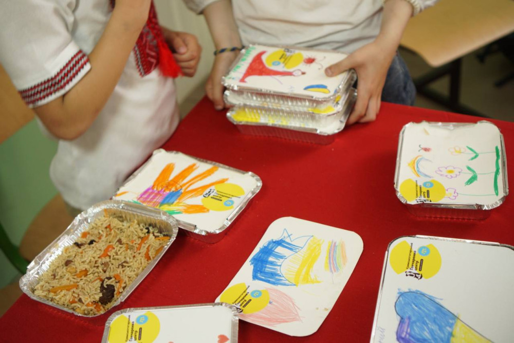В крымскотатарском Гончаренко центре в Одессе вновь приготовили партию горячих обедов для Сил обороны. Но в этот раз, кроме традиционного блюда – плова, волонтеры с маленькими украинцами подготовили и памятный сюрприз. Сердечки, цветочки, ладошки в патриотических сине-желтых цветах появились на упаковках ланчбоксов.