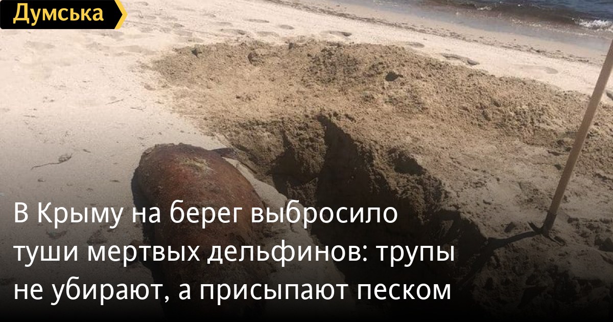 По данным автора поста Владимира Иванова, на берег выбросилось с десяток взрослых афалин. При этом трупы никто не убирает, хотя местные жители неоднократно обращались к представителям власти. Крымчане пытаются присыпать туши песком, так как сами оттащить их не могут – каждая весит не менее 200 кг. Мертвые животные разлагаются и распространяют невыносимый смрад в радиусе около 300 метров.