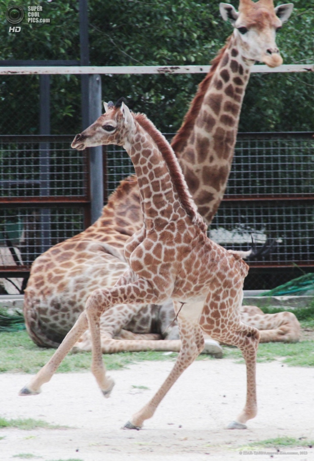 Вчера в крымском сафари-парке «Тайган» состоялась презентация детеныша жирафа по кличке Занзибар, который родился 24 мая в семье жирафов Леди и Красавчика.