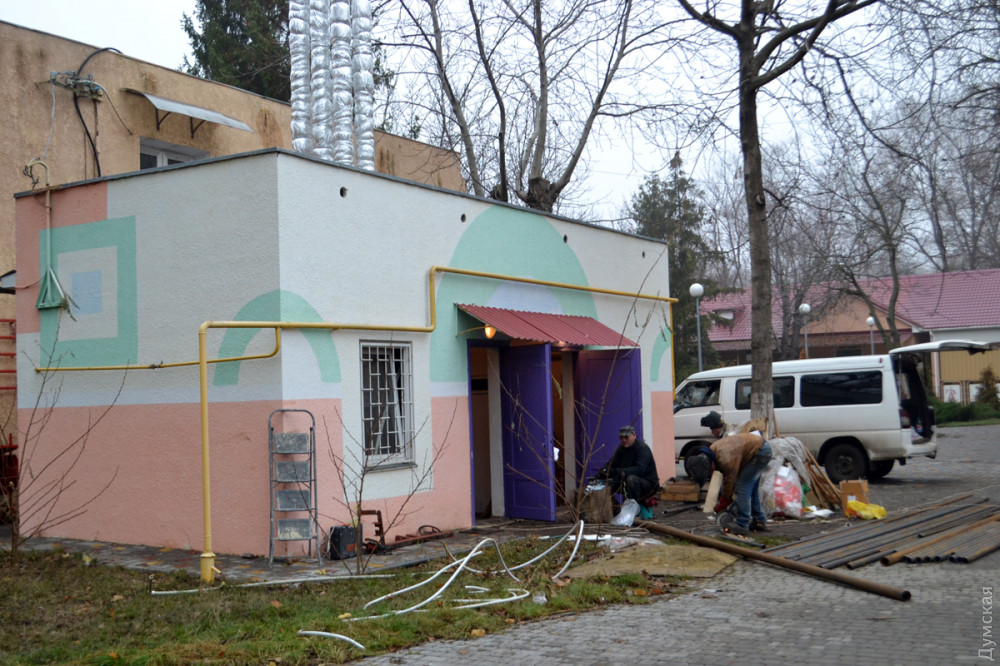 Как передает корреспондент «Думской», сейчас на Даче Ковалевского, 93 в поте лица трудятся десятки коммунальщиков. Дворники буквально вылизывают территорию, очищая ее от листьев и грязи. Слесари-теплотехники режут и сваривают трубы — снова подключают каменные корпуса к отоплению (система не выдержала пробного запуска). Одно здание уже отапливается, в еще два тепло подадут завтра утром.