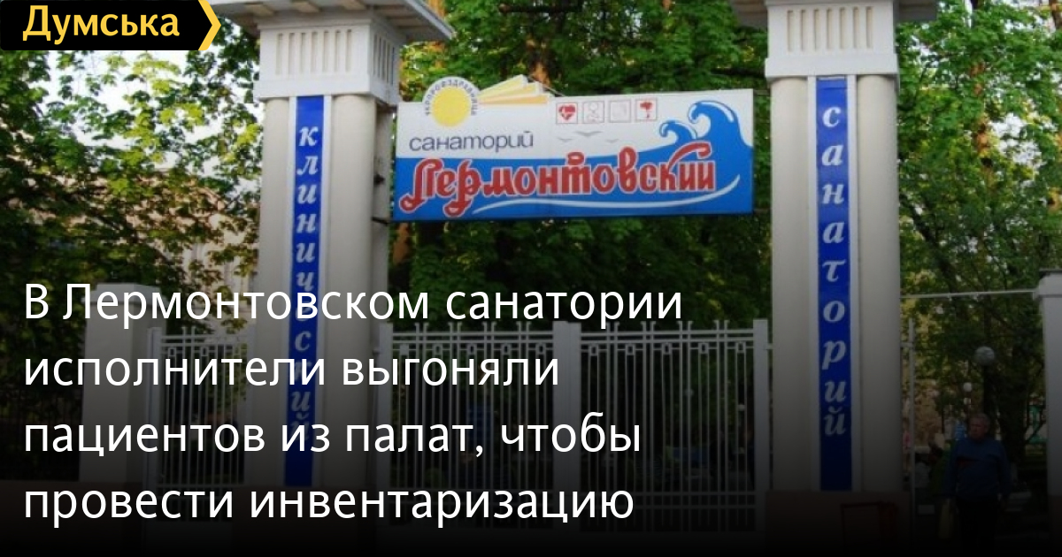 В Лермонтовском санатории «исполнители» выгоняли пациентов из палат, чтобы провести инвентаризациюСегодня в санаторий «Лермонтовский» нагрянули 20 человек, назвавшихся сотрудниками исполнительной службы. Они пытались провести опись имущества. Визитеры сообщили, что действуют согласно определения хозяйственного суда области по заявлению Минюста об обеспечении иска. При этом некоторые «гости» не представились, другие же предоставили удостоверения исполнительной службы, однако документы оказались просроченными. «Эти люди выгнали врачей и пациентов из палат и пытались провести инвентаризацию»,- рассказал «Думской» директор санатория Дмитрий Антипов. Исполнители уже начали опись, однако их спугнули прибывшие на место журналисты и представители «Самообороны Евромайдана». По словам координатора «Самообороны Евромайдана» Виталия Кожухаря, они получили сигнал о попытке рейдерского захвата санатория и приехали, чтобы прояснить ситуацию. После появления евромайдановцев исполнители исчезли. Отметим, это далеко не первая попытка захватить здравницу. Общественности всякий раз удавалось отстоять ее. В настоящее время санаторий работает в обычном режиме. Судебное разбирательство назначено на завтра, 3 сентября. СМЕРТЬ РОСІЙСЬКИМ ОКУПАНТАМ! Помітили помилку? Виділяйте слова з помилкою та натискайте control-enter |
