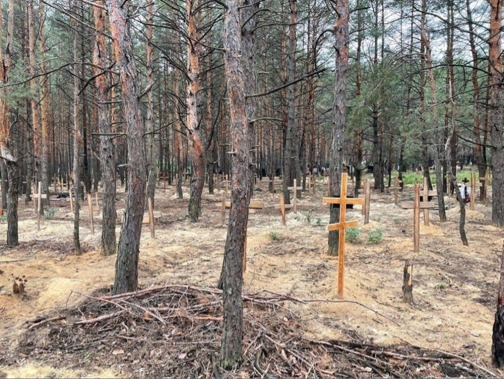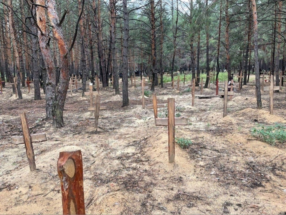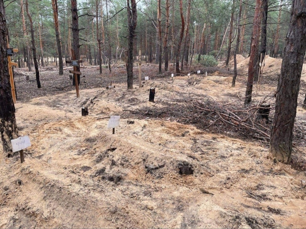 Понад 400 тіл загиблих людей закопано в місці масового поховання в лісі під Ізюмом Харківської області.