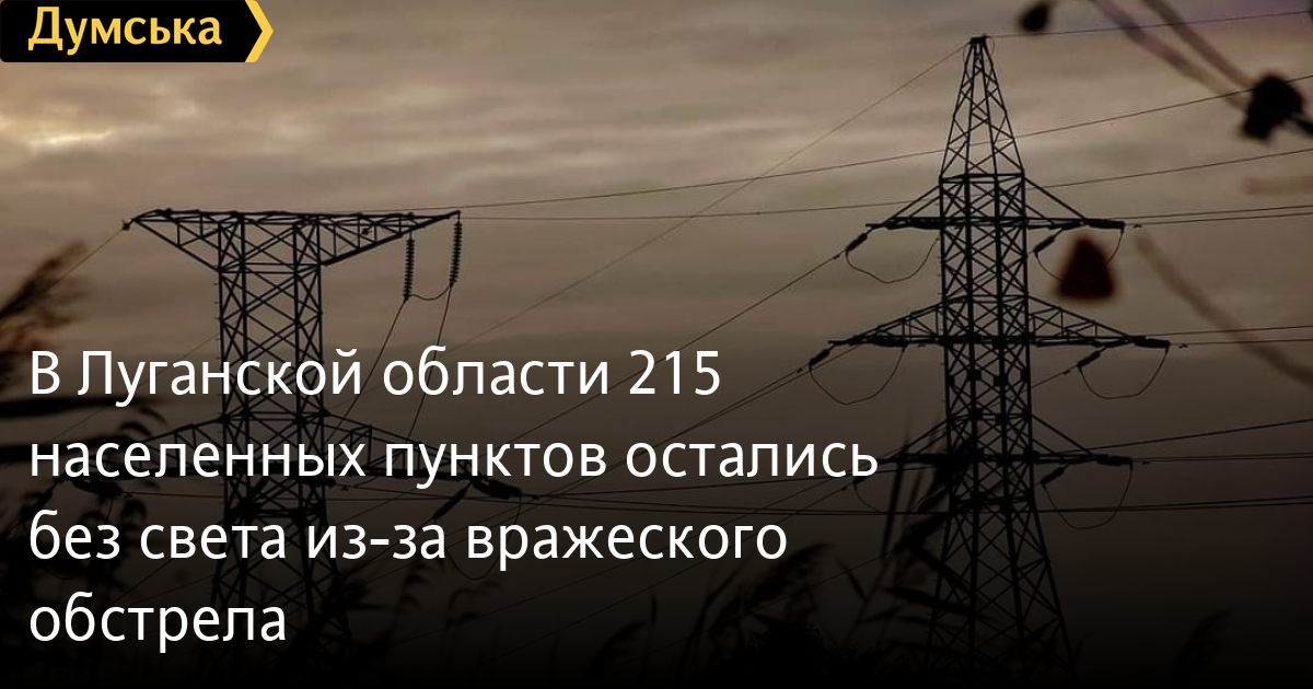 Глава областной военной администрации Сергей Гайдай сообщил, что без электричества остались жители 215 населенных пунктов – городов и сел.
