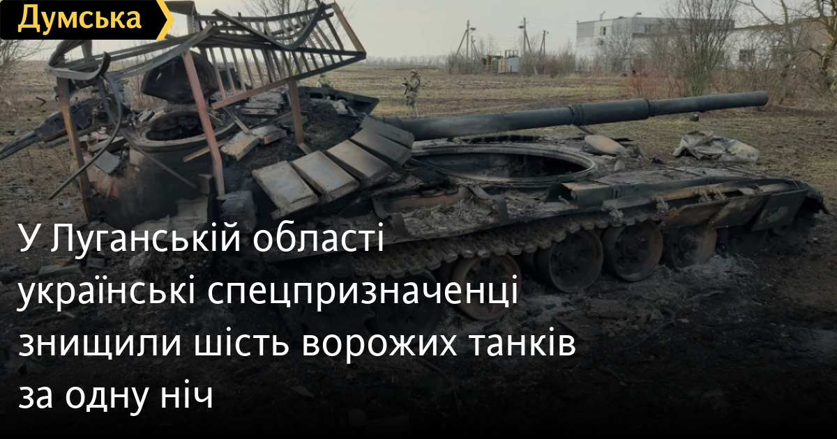 Шість російських танків за одну ніч знищили військовослужбовці Центру спеціальних операцій «А»Служби безпеки України на луганському напрямку.