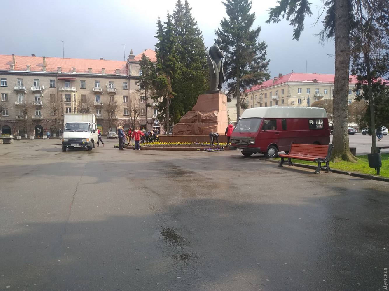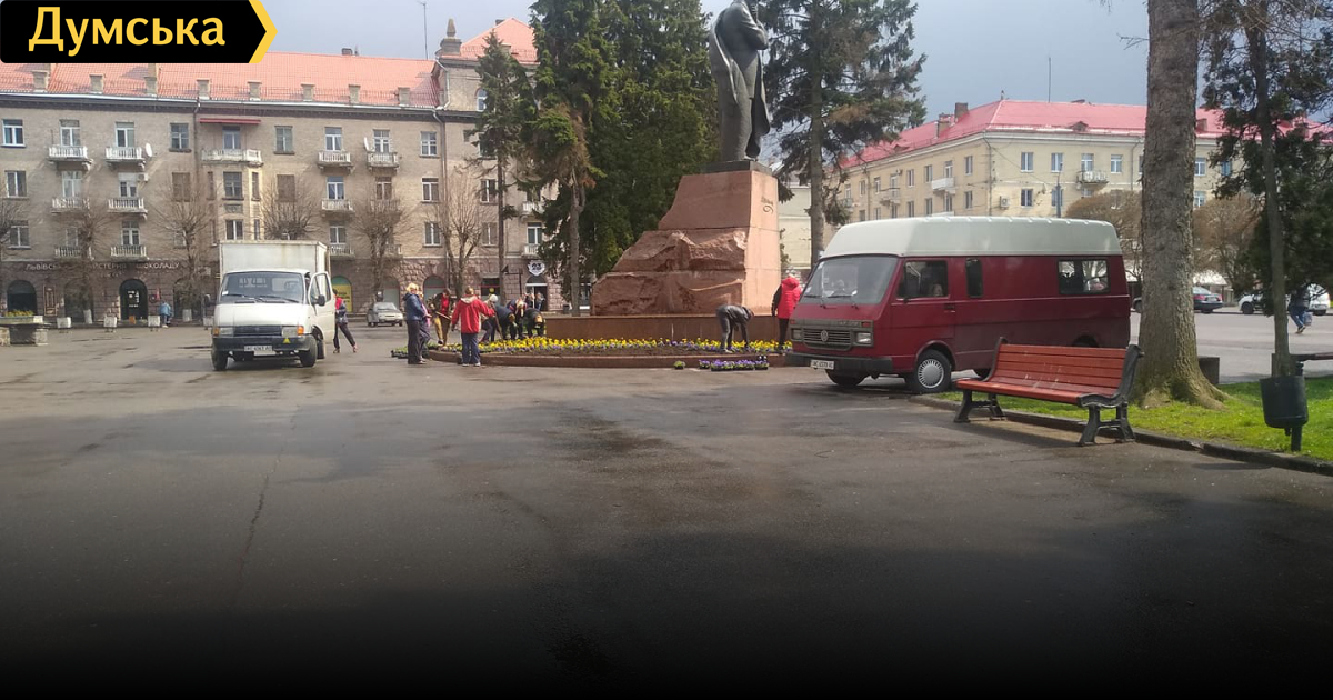 Накануне визита спикера Верховной Рады Дмитрия Разумкова в Луцк коммунальщики, несмотря на дождь, высаживали цветы возле тех локаций, которые он собирался посетить.