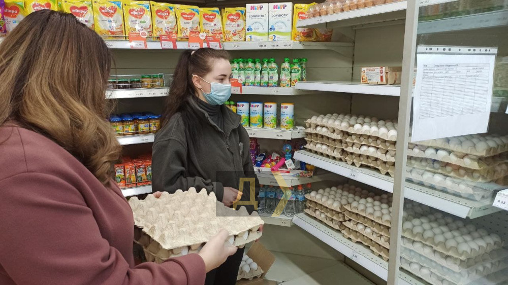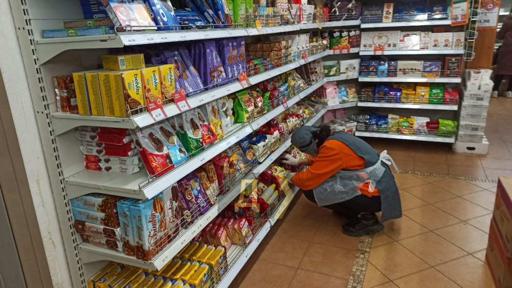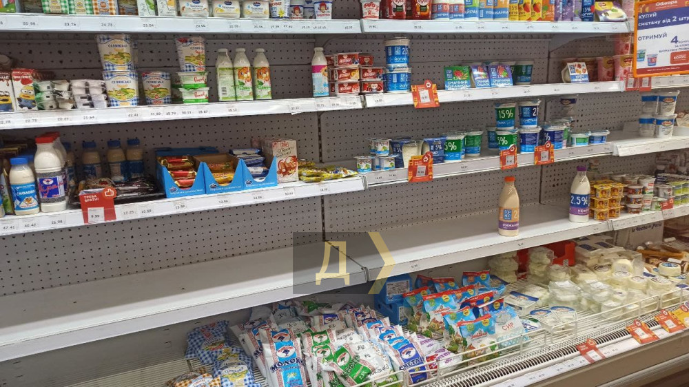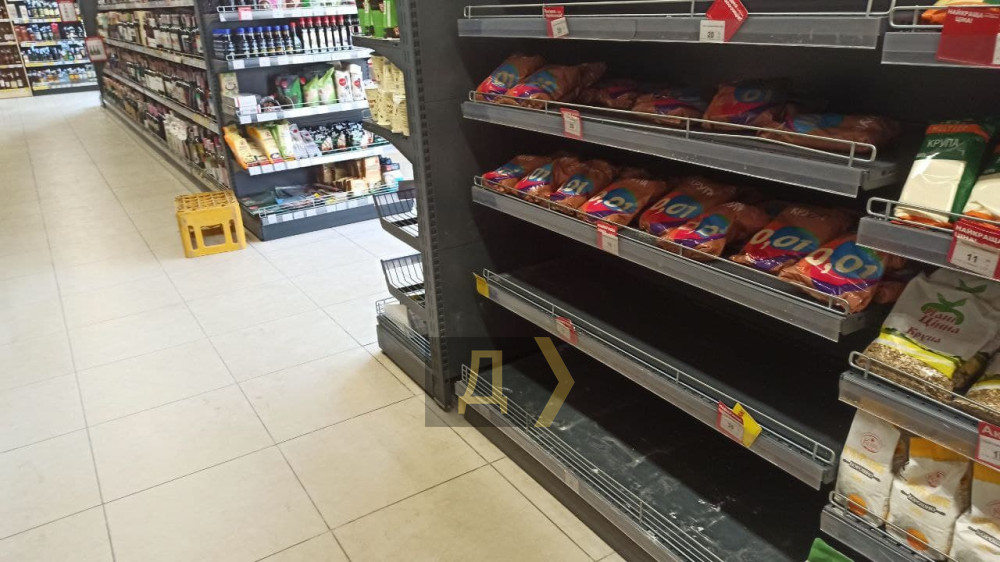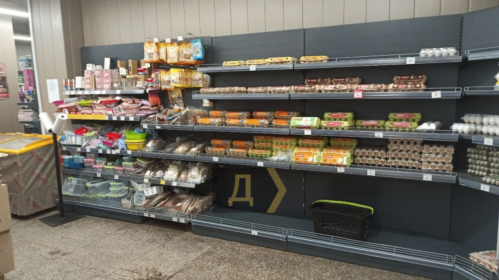 Частично пустуют полки с выпечкой, молочными продуктами и яйцами, но товар бесперебойно подвозят.