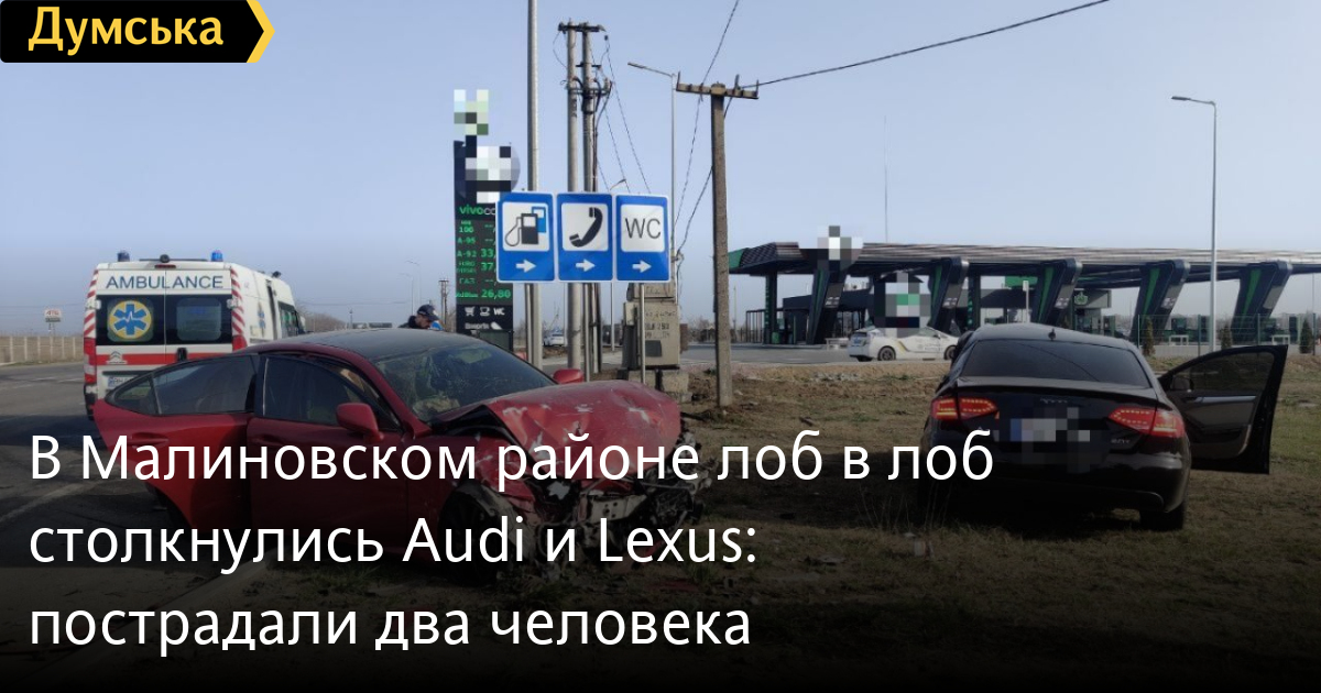 В Малиновском районе лоб в лоб столкнулись Audi и Lexus: пострадали два человекаВодитель и пассажир автомобиля Audi пострадали в результате столкновения с легковым Lexus в Малиновском районе. Как сообщили в патрульной полиции Одессы, водитель Audi, двигаясь по улице Ангарская, при совершении поворота налево с крайней правой полосы не удостоверился в безопасности маневра. В результате он столкнулся с Lexus, двигавшимся в попутном направлении в крайней левой полосе. Помітили помилку? Виділяйте слова з помилкою та натискайте control-enter Новини по цій темі: 30 серпня 2025: Машина вилетіла в кювет: мер Рені потрапив в аварію, його мати загинула, а маленький син у лікарні (фото) 18 серпня 2025: Троє загинули, один у лікарні: на трасі Одеса-Рені водій Mercedes не пропустив фуру (фото) 12 серпня 2025: Як у кіно: в Одесі затримали драгдилера з партією психотропів на 20 мільйонів (фото) 4 серпня 2025: Експертизу не зробили, камери не подивилися: одеські волонтери скаржаться на саботаж поліції у розслідуванні вбивства собаки |