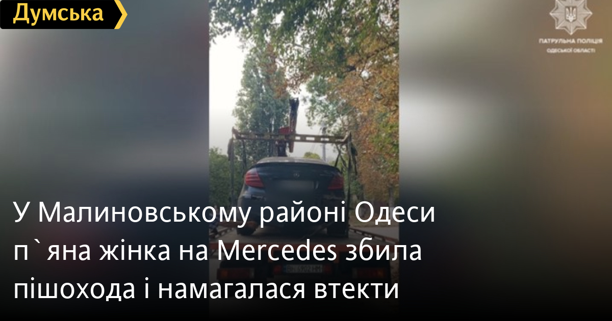 У Малиновському районі Одеси п`яна жінка на Mercedes збила пішохода і намагалася втекти