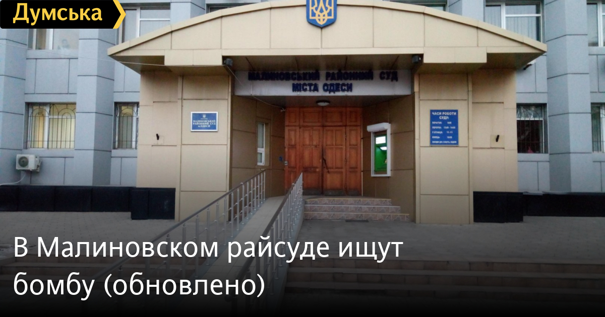 Взрывотехники и кинологи со служебными собаками осматривают помещения Малиновского райсуда Одессы в поисках взрывчатки. Как сообщили в полиции, неизвестный «телефонный террорист» в 8:30 позвонил на 102 и сообщил о заложенной в админздании на Василия Стуса, 1 бомбе. Всех сотрудников и посетителей суда эвакуировали. ОБНОВЛЕНО В 11:09. Взрывчатку в суде не нашли. 60 эвакуированных человек вернулись в здание. Полиция устанавливает личность «телефонного террориста». СМЕРТЬ РОССИЙСКИМ ОККУПАНТАМ! Заметили ошибку? Выделяйте слова с ошибкой и нажимайте control-enter |