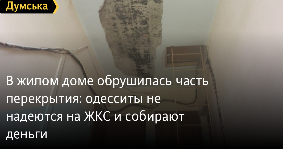 В жилом доме обрушилась часть перекрытия: одесситы не надеются на ЖКС и собирают деньгиМинувшей ночью в доме №8а по проспекту Гагарина рухнула часть перекрытия между чердаком и парадной. К счастью, обошлось без жертв. Как рассказал «Думской» житель дома Денис, инцидент произошел около 21:30. «Дома была только моя беременная жена. Она говорит: грохот был такой, будто что-то взорвалось, а оказалось, что обвалился потолок под чердаком на лестничной площадке», — вспоминает одессит. Жильцы утверждают, что ЧП - результат бездействия местных коммунальщиков. Оказывается, одесситы уже не один год жалуются в ЖЭС на протекающую крышу, но адекватных мер так и дождались. «Дом построен 1948 году, последний ремонт здесь был еще при советской власти. С тех пор к нам даже дворник не заходит. И вот после дождей крыша не выдержала», — сетует Денис. Потеряв надежду на помощь коммунальщиков, жильцы дома намерены восстанавливать кровлю вскладчину. К слову, два года назад они уже проводили косметический ремонт подъезда за свои деньги. СМЕРТЬ РОССИЙСКИМ ОККУПАНТАМ! Заметили ошибку? Выделяйте слова с ошибкой и нажимайте control-enter |