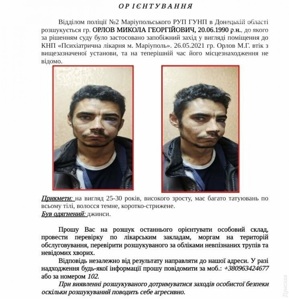 Уточняется, что речь идет о 30-летнем жителе Торецка Донецкой области Николае Орлове. После побега из лечебницы он был объявлен в розыск, на поиски направили сразу несколько подразделений полиции.