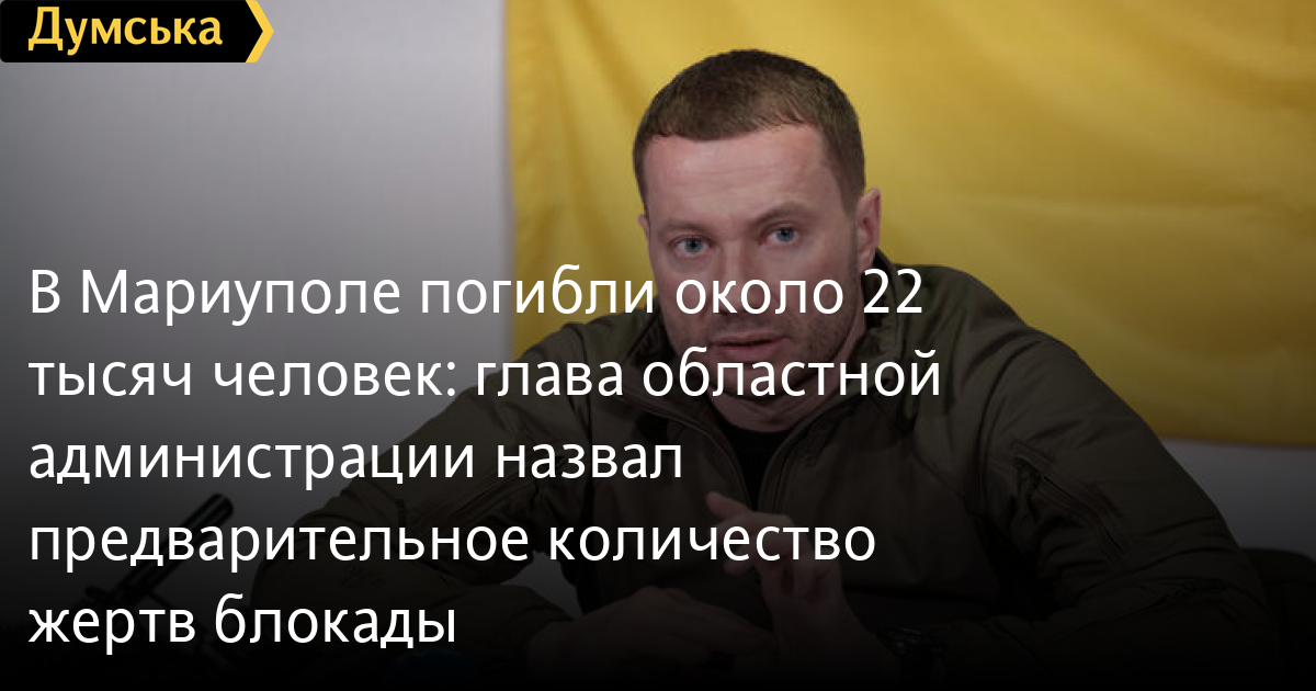 Донецкая областная военная администрация предварительно оценивает количество погибших в результате военных действий жителей Мариуполя в 20-22 тысячи.