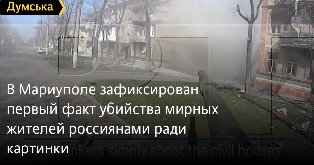 «Это первый зафиксированный и неоспоримый факт убийства гражданских в Мариуполе для видео контента. Если у военной преступности есть недосягаемая высота, то россияне ее преодолели», — отметил Андрющенко.