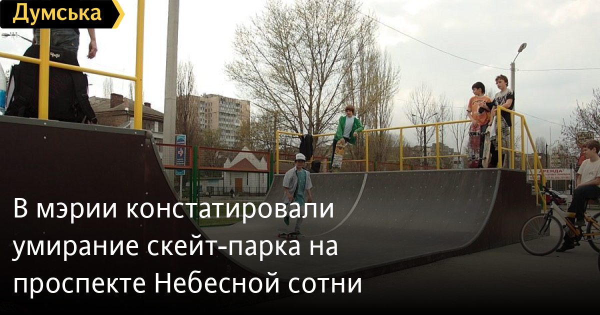 Напомним, что скейт-парк на проспекте Небесной сотни открыт в 2009 году. Сами роллеры уже тогда утверждали, что покрытие площадки травмоопасное, из-за чего популярностью площадка не пользовалась. Ее облюбовали местные алкоголики и бомжи, довольно быстро уничтожившие все имевшиеся там сооружения.