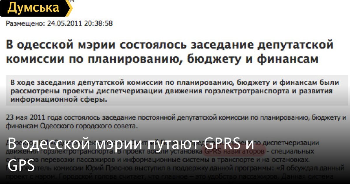 Отметим, что члены комиссии путают системы спутниковой навигации GPS с GPRS — пакетной радиосвязью общего пользования, надстройкой над технологией мобильной связи.