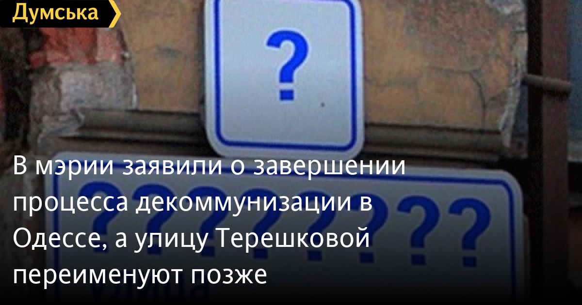 Также юрист пояснила, почему на карте осталась улица Терешковой и заверила, что ее переименование – вопрос времени: «Случилось так, что на момент подписания документа председателем облгосадминистрации в Одессе уже была улица Героев Крут, поэтому их стало две. Для того, чтобы исправить эту ситуацию мы оставили временно название Терешковой. И хотя под действие закона о декоммунизации эта личность не подпадает, тот факт, что она голосовала за аннексию Крыма, будет учтен – в ближайшее время соберутся общественные слушания, и местные жители решат, какое название будет носить их улица. Но могу точно сказать, этого топонима в Одессе не будет».