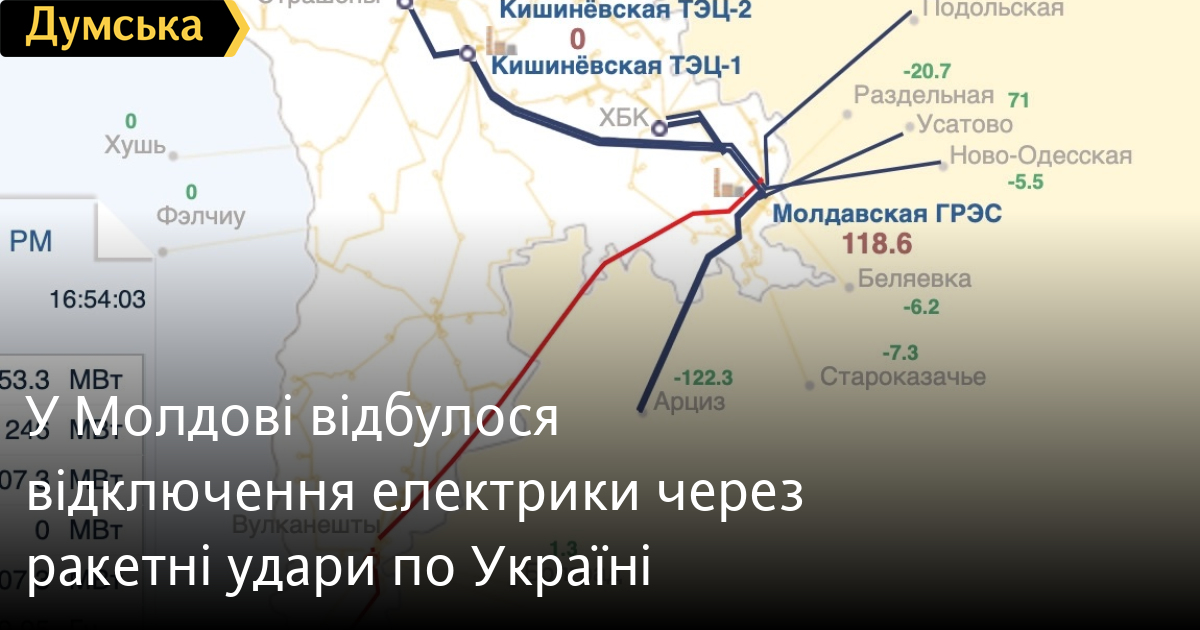 Через ракетний обстріл української енергетичної інфраструктури сталося відключення електрики в Молдові.