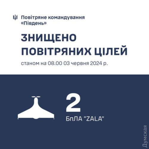 Крім того, протиповітряна оборона півдня України збила розвідувальний дрон ZALA на Миколаївському напрямку.