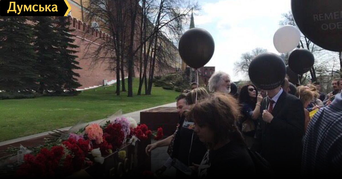 Аналоги черных шариков с надписями «Remember Odessa. Stop Fascism», которые сегодня выпустили возле Дома профсоюзов на Куликовом поле, замечены на памятных мероприятиях, организованных в Москве на Красной площади. Фото с московской акции в память о жертвах беспорядков 2 мая выложил на своей странице в Фейсбуке беглый сепаратист Антон Давидченко.