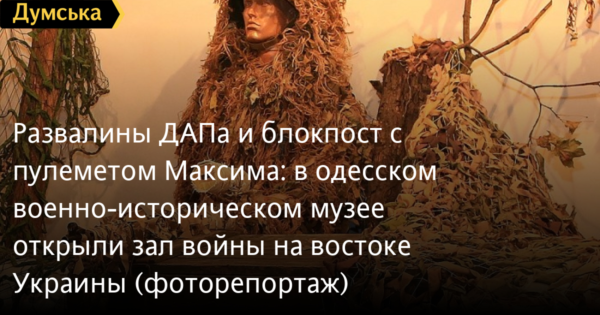 В зале есть две исторические инсталляции. Одна из них изображает развалины Донецкого аэропорта, вторая — украинский блокпост со всеми атрибутами, включая патронные ящики, маскировочную сеть, мешки с песком и даже реальное вооружение. Из бойницы выглядывает советская модернизация пулемета Максима — создатели экспозиции заверили, что такие артефакты тоже участвовали в боевых действиях.