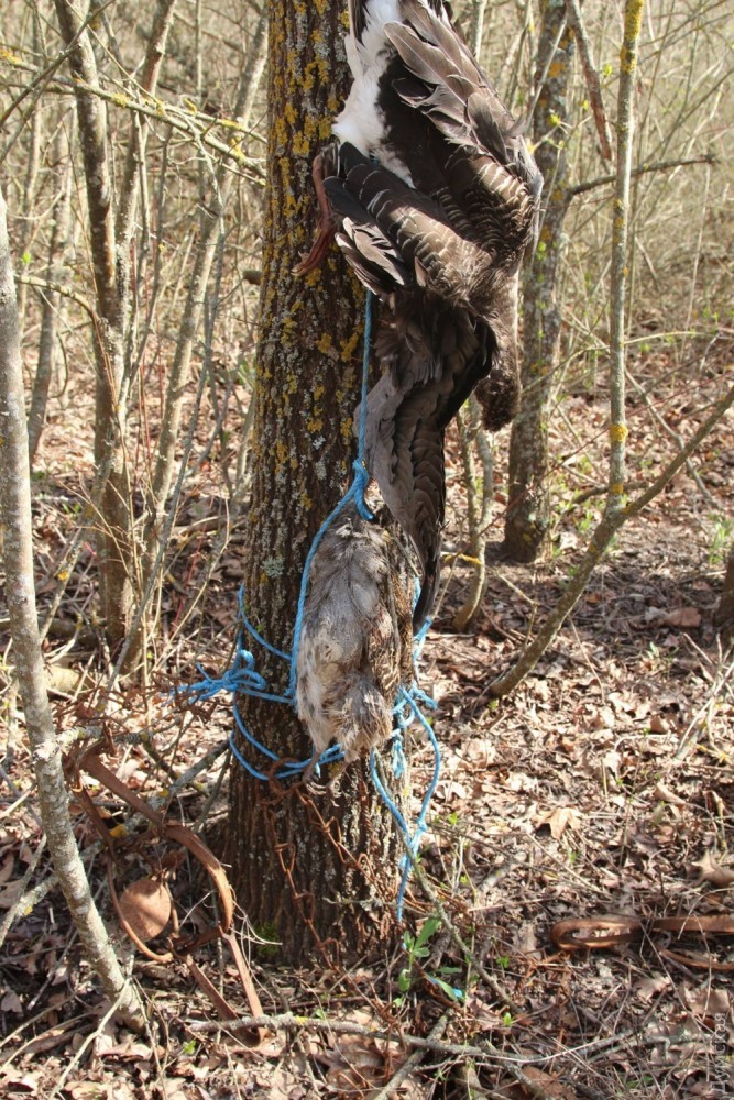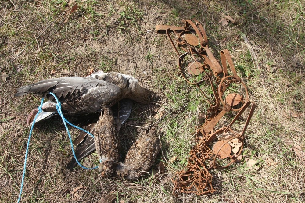 «Обнаружен дьявольский инструмент пытки животных. На дереве висели тушки диких птиц-белолобого гуся и двух куропаток. А внизу были замаскированы 4 мощных капкана, использование которых полностью запрещено»,- сообщил Иван Русев, добавив, что пойманное в такой капкан животное погибает в течение нескольких дней от получения травм и ужасающей боли.