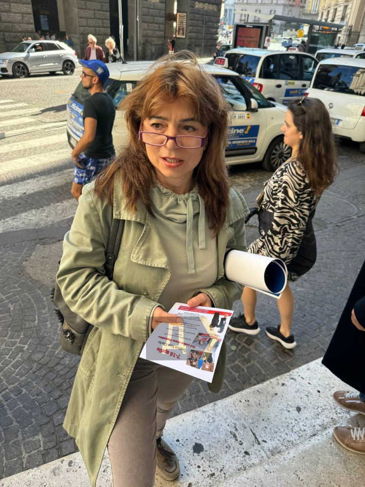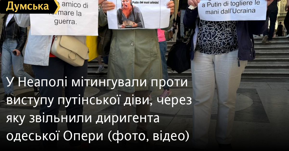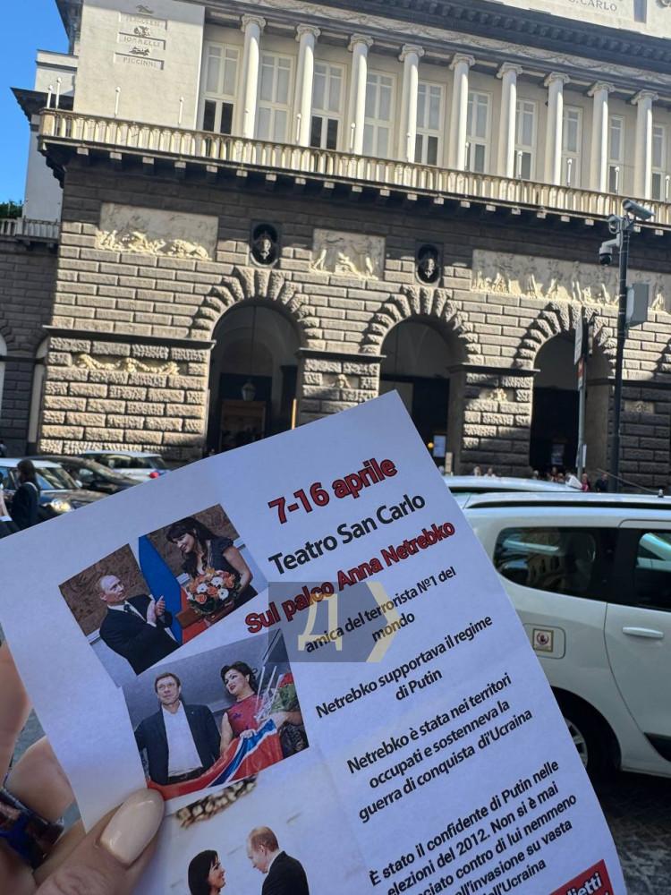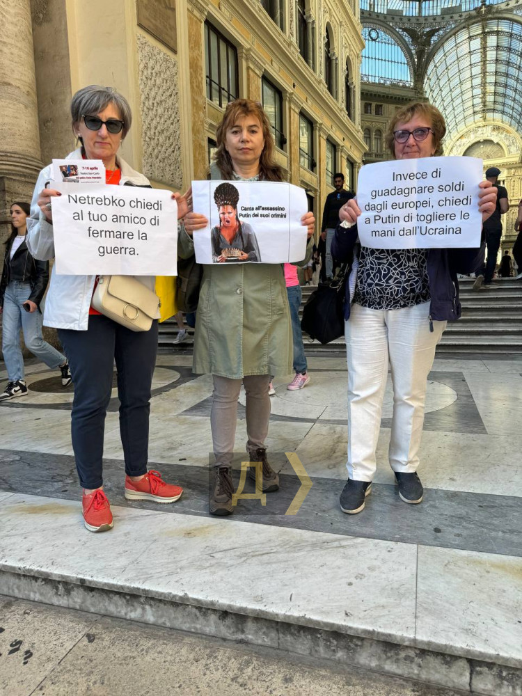 Мітинг проти виступу путінської виконавиці Анни Нетребко пройшов у Неаполі біля оперного театру Сан-Карло.