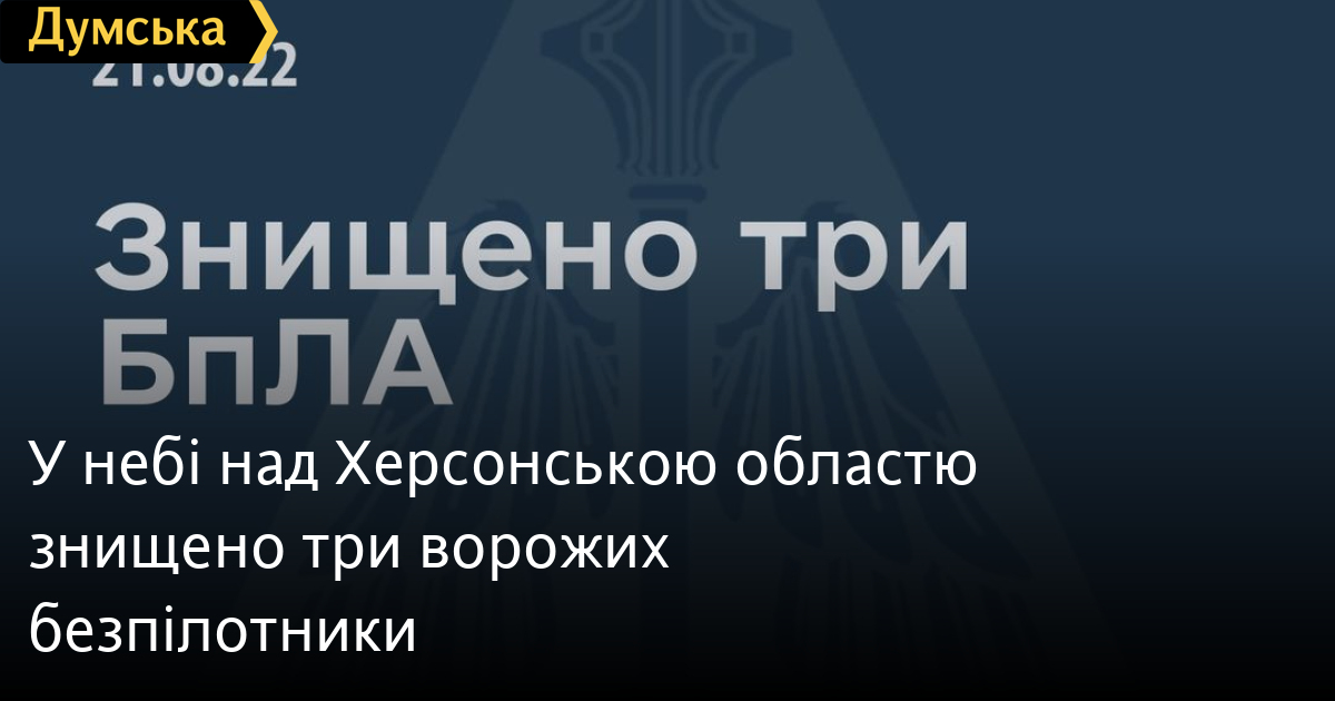 Сили Повітряного командування «Південь» 21 серпня збили три ворожих безпілотники у небі Херсонської області.