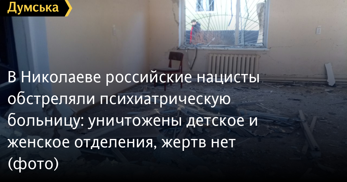 Психиатрическая лечебница Николаева пострадала в результате ночного обстрела города, произведенного российскими нацистами.