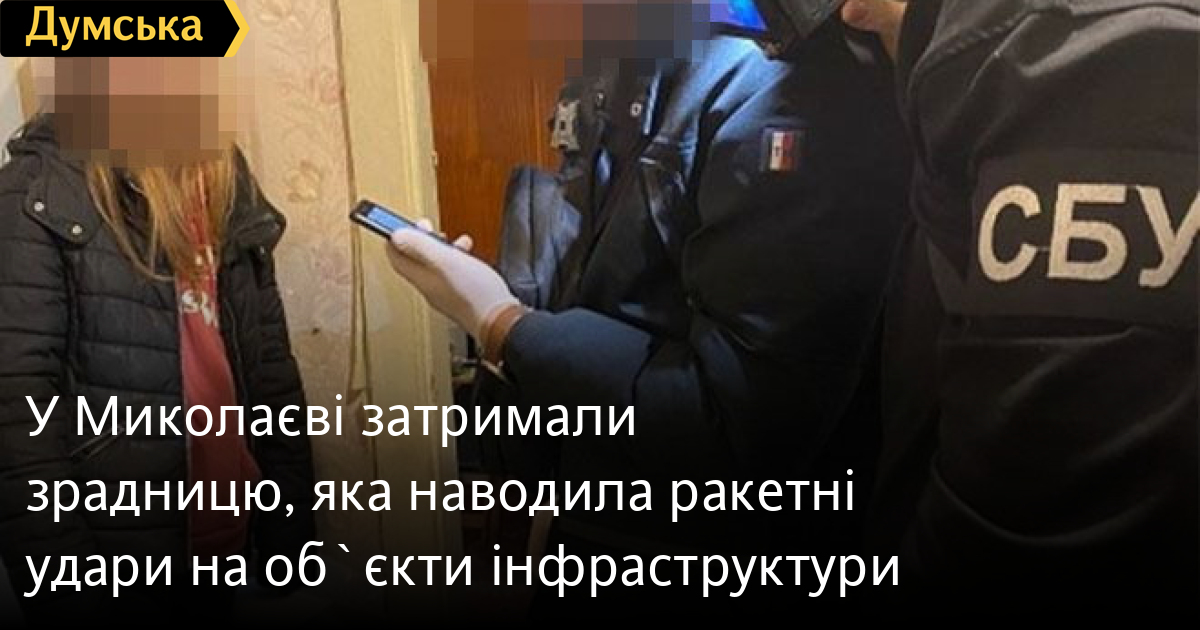 Мешканку Миколаєва, яка добровільно пішла на співпрацю з ворогом і наводила ракетні удари по місту, затримали співробітники Служби безпеки України.