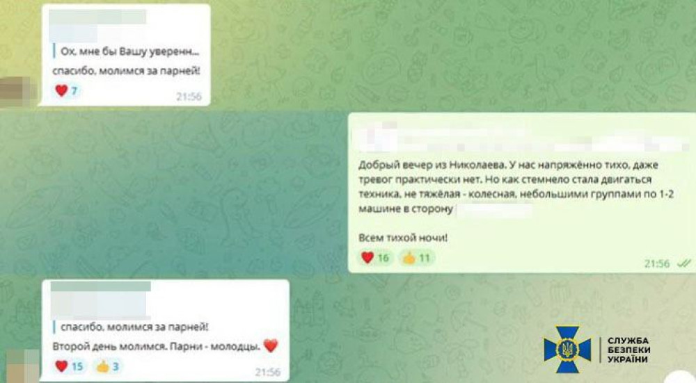 Насамперед зловмисниця передавала інформацію щодо переміщення військової техніки ЗС України, зокрема про місця дислокації повітряної військової техніки на Миколаївщині, повідомили в СБУ.