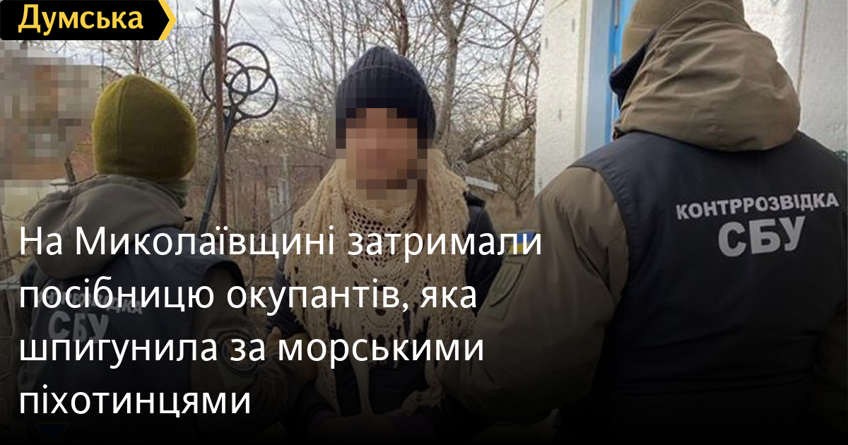 Служба безпеки України викрила мешканку Миколаївської області, яка вивідувала для ворогів місця дислокації підрозділів морської піхоти.