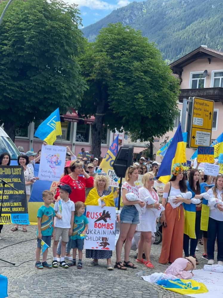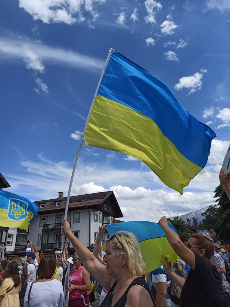 Сотні людей вийшли на підтримку України та заспівали гімн нашої держави на вулицях німецького містечка Гарміш, поруч з яким проходить саміт голів держав та урядів країн G7.