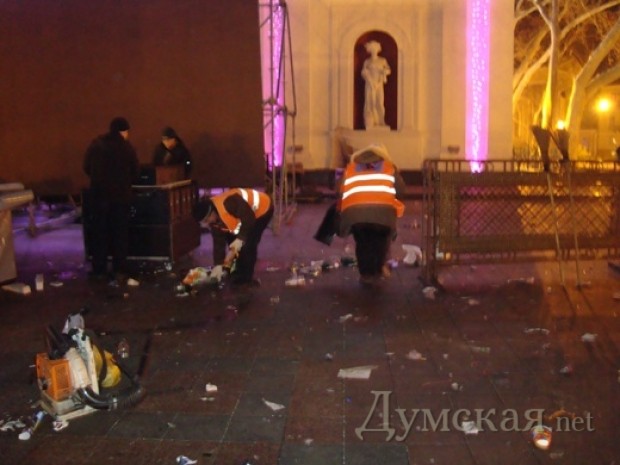 По его словам, всего работники предприятий вывезли 35 тонн мусора, из них 30 тонн было собрано в центре Одессы — на Думской площади и Приморском бульваре, где проходили основные новогодние мероприятия. Он напомнил, что были зафиксированы случаи недобросовестной уборки предпринимателями точек продажи новогодних елок. Убирать эти участки пришлось также работникам коммунальных служб.