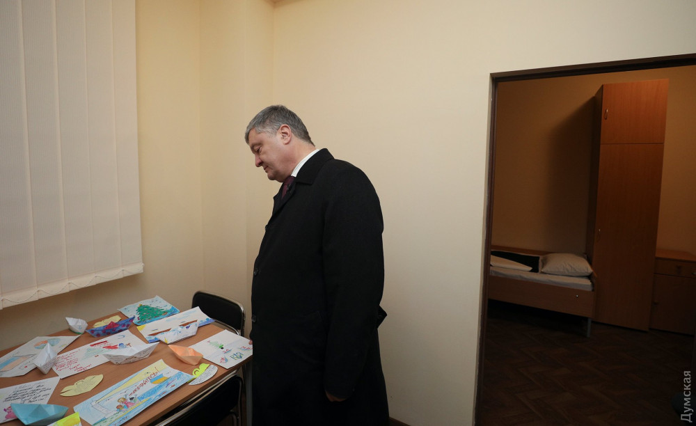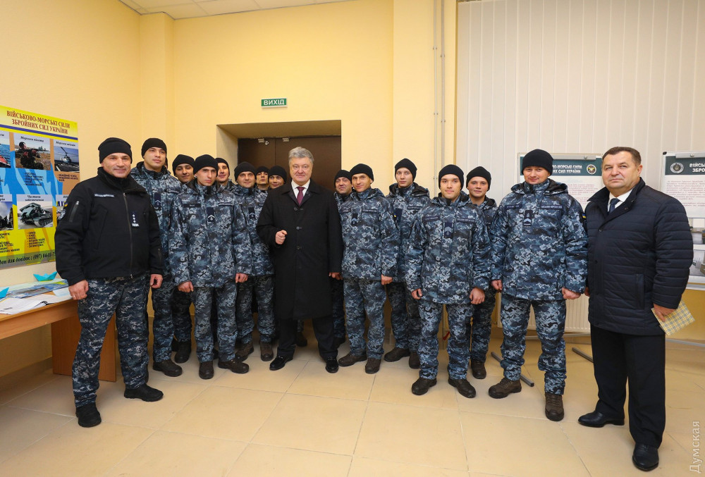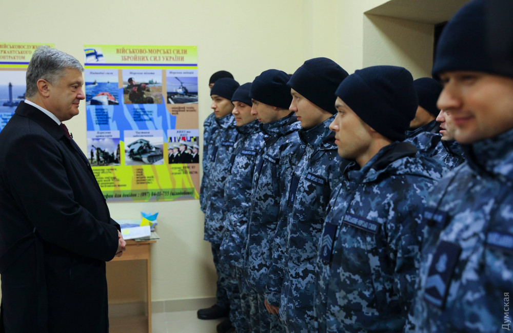 Президент Украины Петр Порошенко осмотрел сегодня новое общежитие для контрактников Военно-морских сил Украины в Газовом переулке Одессы.