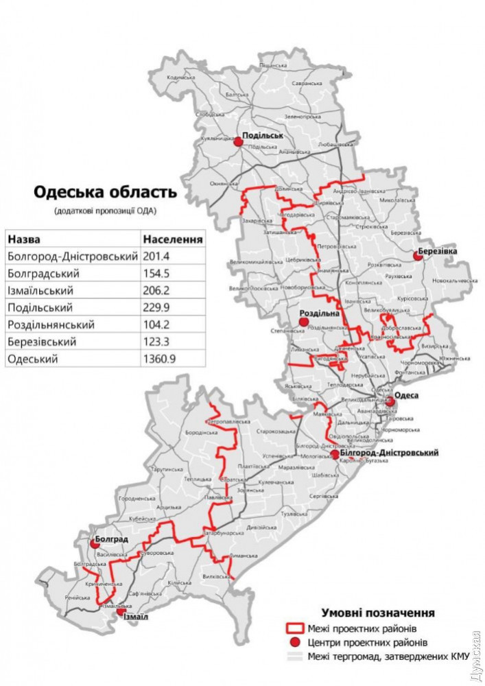 Напомним, в июле Верховная Рада Украины приняла постановление об укрупнении районов по всей стране. В Одесской области вместо 26 создали семь больших административно-территориальных единиц: Березовский, Белгород-Днестровский, Болградский, Измаильский, Одесский, Подольский и Раздельнянский районы.