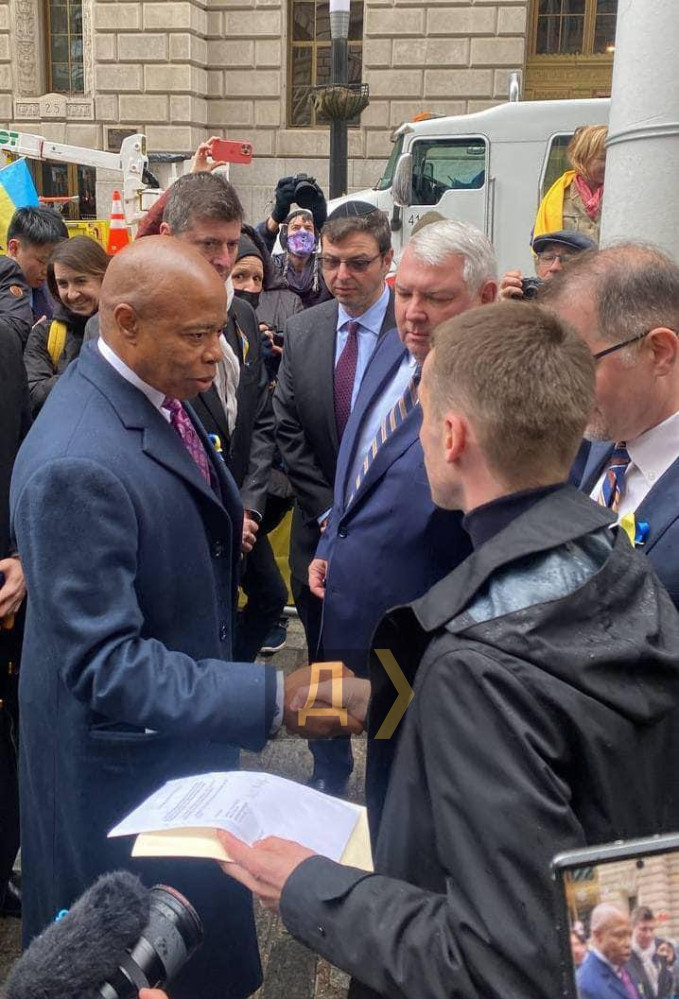 «У березні мене запросили на підняття українського прапора на Уолл-стріт, – розповів він нам. А перед цим я подумав: було б добре піднімати прапор на якійсь українській вулиці. Тоді прийшла ідея написати листа меру: звернутися до нього з проханням, щоби щось у Нью-Йорку носило ім'я України».