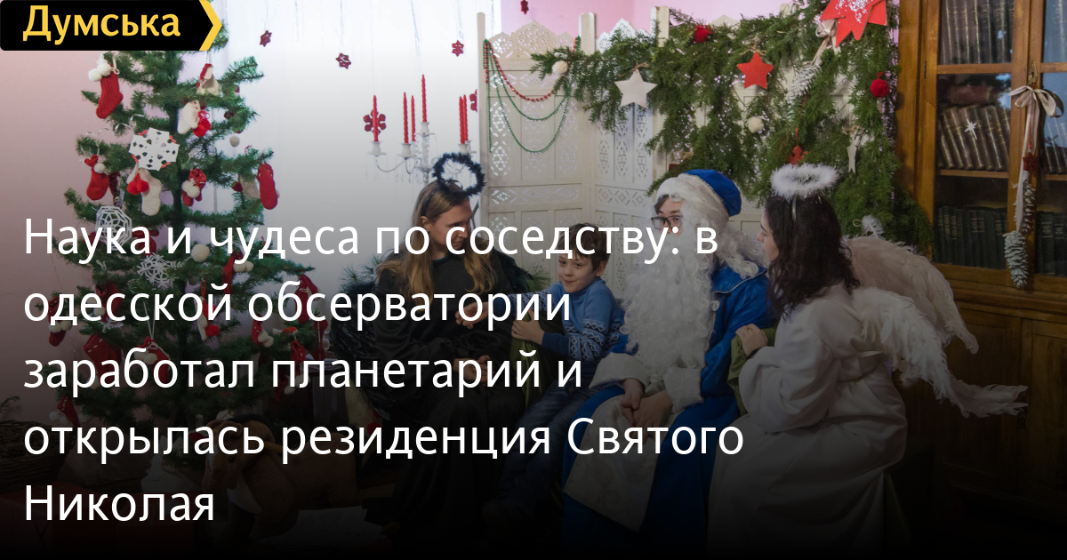 Наука и чудеса по соседству: в одесской обсерватории заработал планетарий и открылась резиденция Святого НиколаяРезиденция Святого Николая, которая до этого несколько лет подряд располагалась в одесском Ботаническом саду, сменила место дислокации. Теперь творящий добро бородач принимает маленьких одесситов в еще более неожиданном месте – Астрономической обсерватории ОНУ имени И.И. Мечникова в парке Шевченко. Специально к празднику вход в помещение обсерватории украсили новогодней атрибутикой — сосновые ветки, словно лианы, обвивают поручни крыльца. Не отстает и главный зал, где в специальной фотозоне встречает своих гостей «астрономический» Николай. Бумажные снежинки облюбовали шкафы, заполненные толстыми научными фолиантами. За дубовым столом, где вот уже без малого 150 лет заседают ученые с мировым именем, детвора старательно пишет просьбы о подарках. «Просят чаще всего что-то современное – телефоны, игровые приставки», — рассказывает Святой Николай, а в миру Максим. Студент третьего курса филологического факультета, вместе с одногруппницами, выступающими в роли черного и белого ангелов, внимательно выслушивает маленьких гостей и дает жизненные советы. «Иногда просят что-то для родителей. Один мальчик попросил маме кольцо, а папе – новых идей, — продолжает Максим-Николай. – А одна девочка пожелала снега и бесконечную елку, чтобы она весь год горела в гирляндах». После общения со сказочными персонажами следует лекция о строении вселенной и экскурсия по обсерватории с обязательным посещением старинного телескопа 1886-го года выпуска. Изюминка праздничной программы — работающий в тестовом режиме планетарий. К слову, посетители резиденции Николая одновременно становятся и первыми посетителями планетария. «Сейчас мы заканчиваем наружные работы, а внутри все готово, – рассказывает председатель Одесского астрономического общества Михаил Рябов. – Мы уже настроили аппаратуру и можем делать полнокупольную демонстрацию». Полноценно работать планетарий начнет уже в начале следующего года после отладки программ и настройки звука. «После каникул начнем предлагать школьникам программы, чтобы дети прослушивали лекции по предмету астрономии, — делится планами астроном. – А по выходным будем ждать всех желающих». По словам ученого, соседство сказочного персонажа и настоящей науки полезно для маленьких одесситов. «Одно другому не мешает. У ребенка должно работать воображение. Это помогает познавать вселенную, — уверен Рябов. — В таком возрасте у людей нужно будить фантазию, а не замыкаться на фактах, чтобы развивался интерес к науке, космосу и традициям, которые лежат в основе человеческой культуры». Святой Николай с ангелами будет гостить на территории обсерватории до 28 декабря. Чтобы попасть в резиденцию, необходимо записаться по телефонам обсерватории. (Стоимость визита 100 гривен). Как рассказала «Думской» соучредитель ОО «Ассоциация выпускников университета Мечникова» Олеся Рогульская, которая является одним из организаторов мероприятия, собранные в резиденции средства будут направлены на развитие структур университета, в частности на планетарий и восстановление старинных оранжерей Ботанического сада. СМЕРТЬ РОСІЙСЬКИМ ОКУПАНТАМ! Помітили помилку? Виділяйте слова з помилкою та натискайте control-enter |