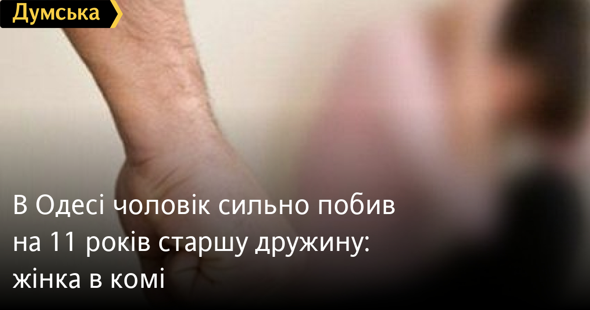 В Одесі чоловік сильно побив на 11 років старшу дружину: жінка в комі32-річний одесит побив дружину до стану коми. Як повідомили «Думській» джерела в правоохоронних органах, зараз 43-річна жінка перебуває в Єврейській лікарні. Зрештою чоловік зізнався, що 5 листопада під час сімейної сварки бив дружину руками та ногами. У поліцію про подію повідомили лікарі. Чоловіка опитали і відпустили під особисті зобов'язання. Правоохоронці почали досудове розслідування за статтею нанесення тяжких тілесних ушкоджень. Винному загрожує до 8 років в'язниці. СМЕРТЬ РОСІЙСЬКИМ ОКУПАНТАМ! Помітили помилку? Виділяйте слова з помилкою та натискайте control-enter Новини по цій темі: 29 липня 2025: В Усатово Одеської області сталася перестрілка: поліція працює на місці (відео, оновлено) 28 липня 2025: П'яний на "Ягуарі" або гіпертонік? Звільнений топ-посадовець одеської поліції хоче повернутися на службу 19 червня 2025: Дівчинку, яку шукали сотні одеситів, знайшли вбитою: поліція працює з чоловіком, ймовірно причетним до загибелі 27 травня 2025: Увели гектар в університету: на Одещині засудили земельних аферистів, але без посадки і Хвоста |