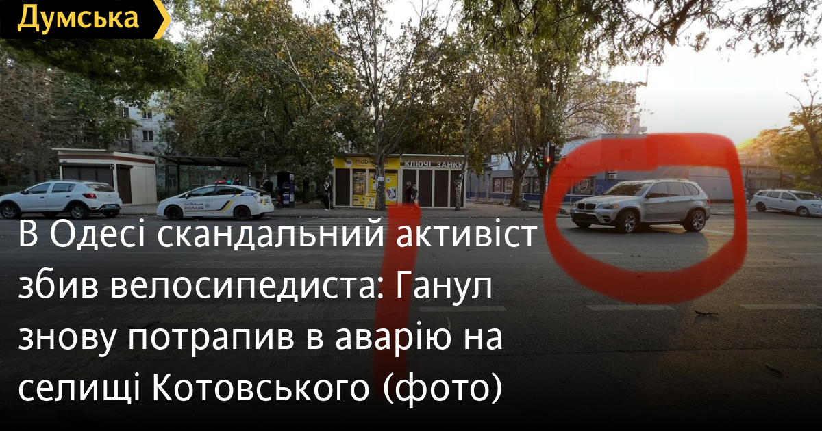 Це не перша ДТП Ганула на селищі Котовського. У 2020-му BMW X5, у якому перебував він із товаришем, врізався лоб у лоб у мікроавтобус на Бочарова. За твердженням очевидця, BMW порушив правила дорожнього руху — їхав прямо в смузі для розвороту.