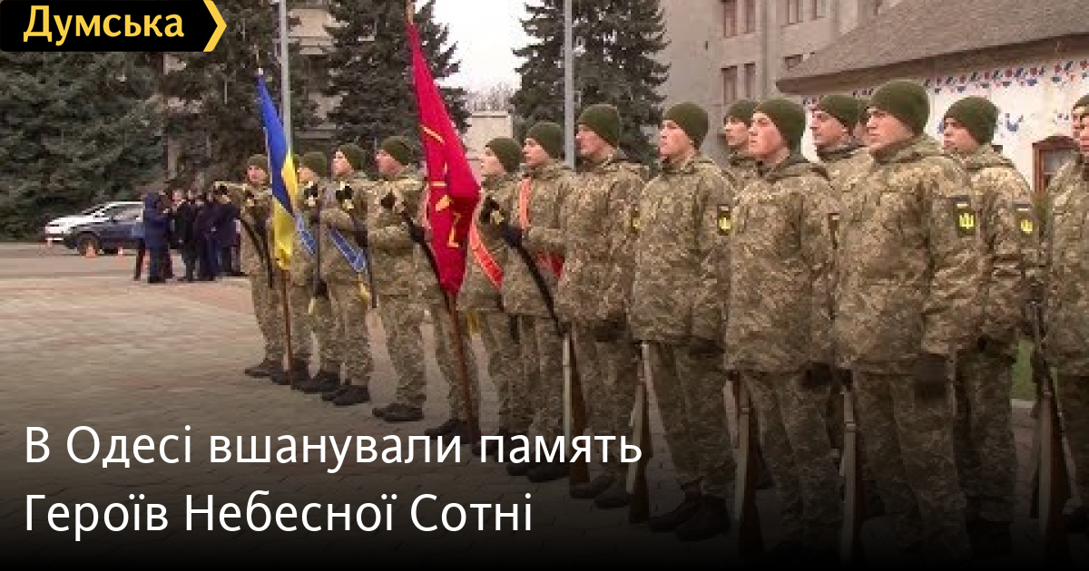 107 світлин з чорною стрічкою, хвилина мовчання, оркестр і залпи з рушниць. В Одесі вшанували пам'ять Героїв Небесної Сотні, які п'ять років тому загинули під час подій Революції Гідності.