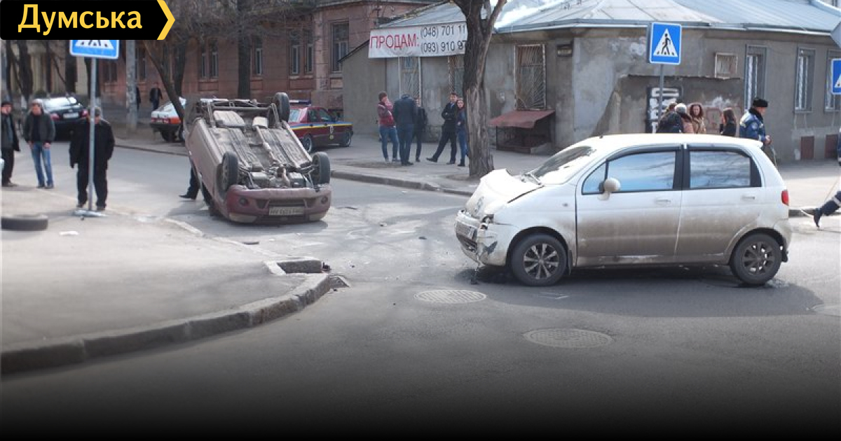 Добавлено. По данным пресс-службы облГАИ, женщина-водитель автомобиля Suzuki Ignis ехала по Манежной со стороны Ольгиевской и на перекрестке с Пишоновской не предоставила преимущество в движении и врезалась в Daewoo Matiz, который ехал справа по главной дороге. После столкновения Suzuki перевернулся. Управлявшая им 62-летняя женщина доставлена в больницу с переломом ключицы и закрытой черепно-мозговой травмой. Фото — Teenager, «Одесский форум»