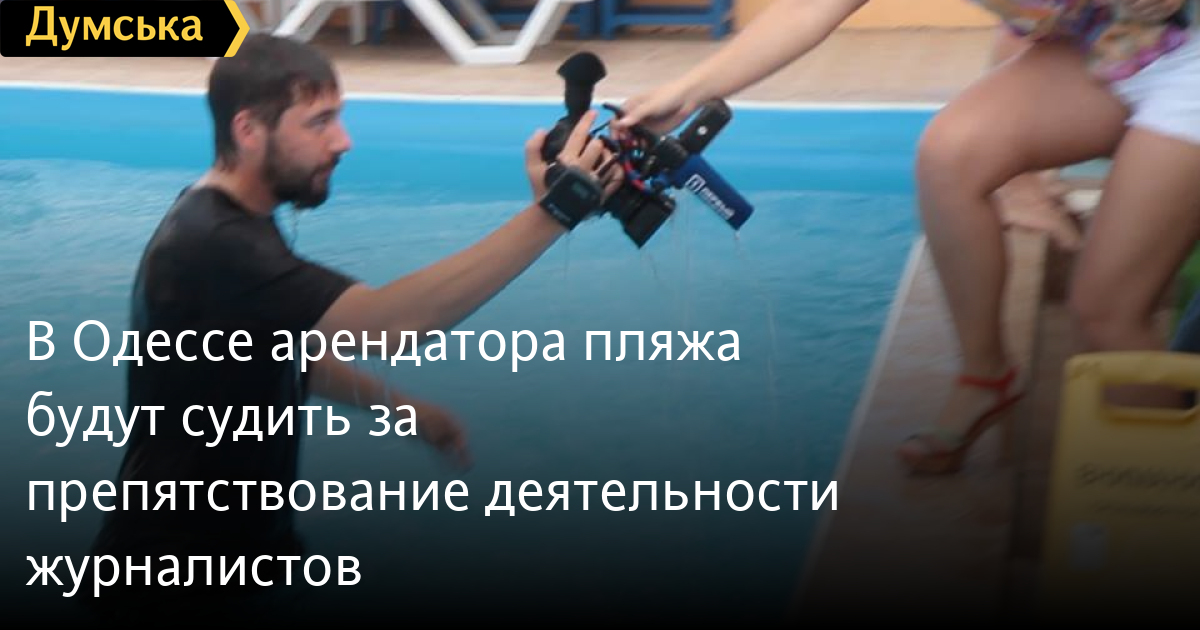 Как сообщает пресс-служба ведомства, речь идет об инциденте, произошедшем 11 июня прошлого года, когда съемочная группа телеканала «Первый городской» во время подготовки материала о свободном доступе на одесские пляжи подверглась нападению со стороны охранников, а директор предприятия Юрий Резников толкнул оператора Сергея Самойлова в бассейн.