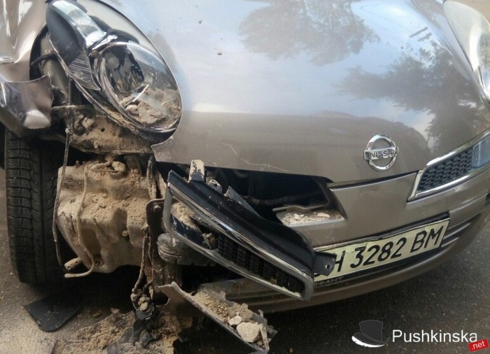 Сегодня на Коблевской улице автомобиль Nissan врезался в стену дома.